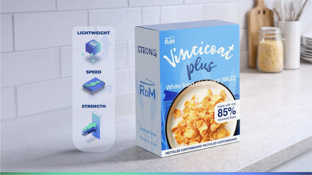 Reduction has become a top sustainability priority for brand owners and retailers. While RDM Group has long led the market in recyclable, circular cartonboard solutions, Vincicoat PLUS represents a strategic shift towards “reduce” as well as “recycle”.