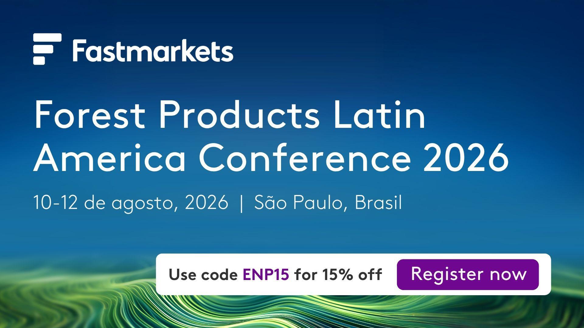 Registration: Act now to secure your spot and use ENP15 for 15% off. Book by May 1 to benefit from the super early bird rates: https://www.fastmarkets.com/events/fastmarkets-forest-products-latin-america-conference/tickets/